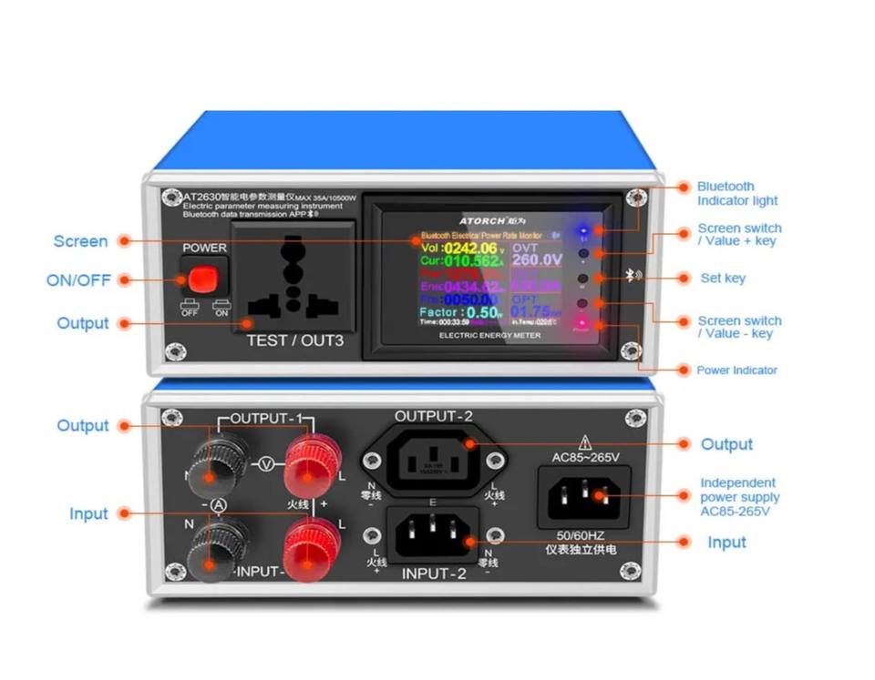 AT2630 AC Ammeter Voltmeter Digital Wattmeter Socket Electric USB Tester Voltage Current Multimeter Power Meter Charge Indicator