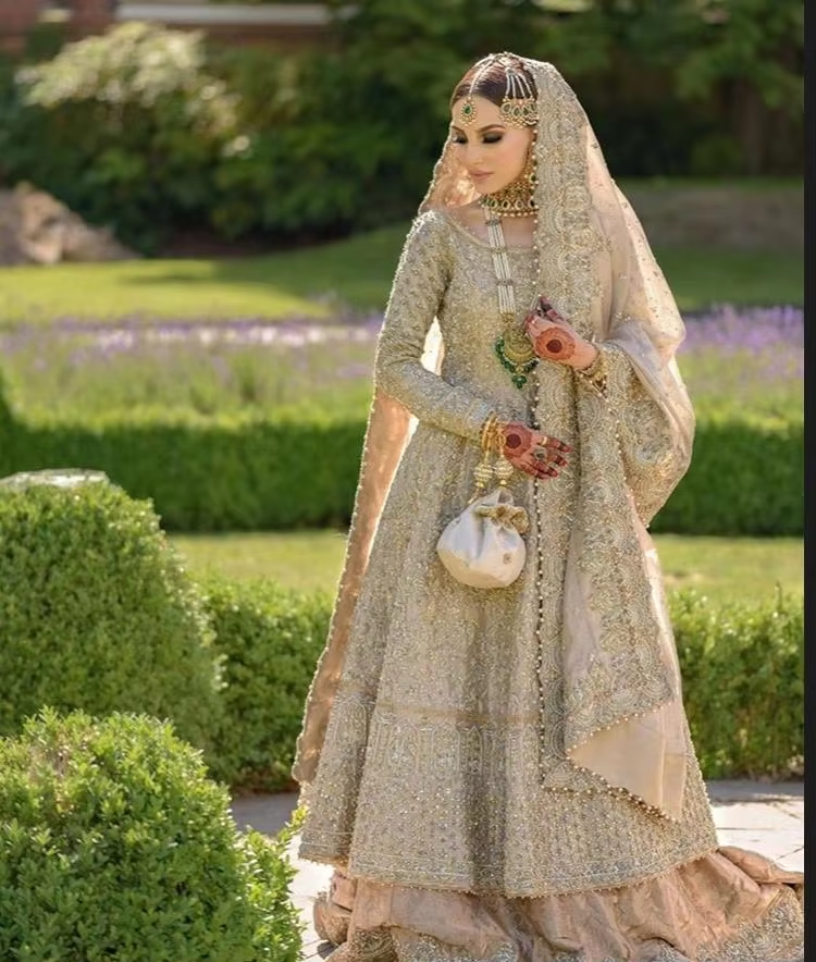 ATIYA LIBAS Indian/Pakistani Stunning Bridal Traditional Long Acetate Kurta & Lehenga Dress Heavy Zardozi Embroidery for Wedding