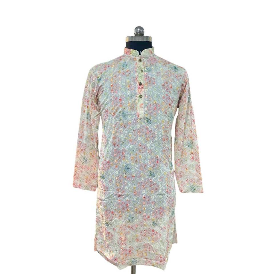 ATTRACTIVE COTTON LUCKNOWI CHICKENKARI DIGITAL PRINT WORK MENS KURTA PAJAMA BABY PINK