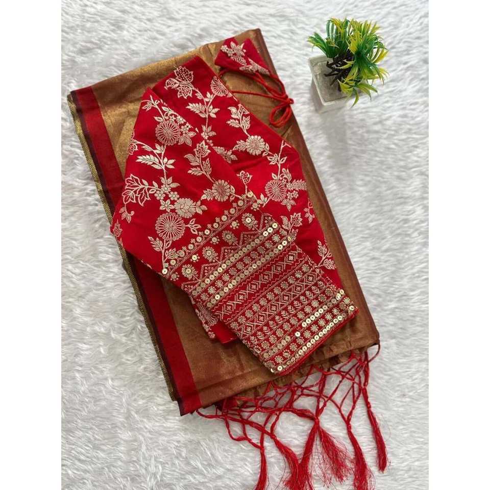 Attractive Silk Zari Weaving Work Saree with Stitched Blouse in Red