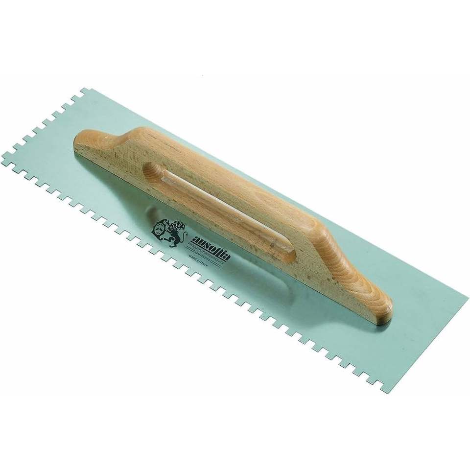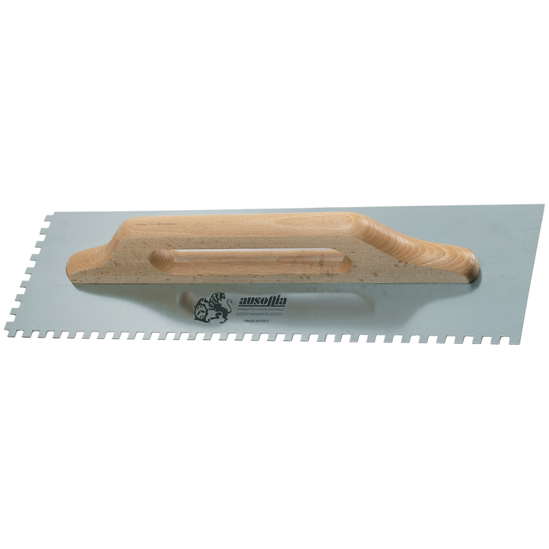 AUSONIA 48x14 Cm-10x10 mm Teeth TWO-HANDED NOTCHED CEMENT TROWEL Stainless Steel and Plastic Blade Pointed Features