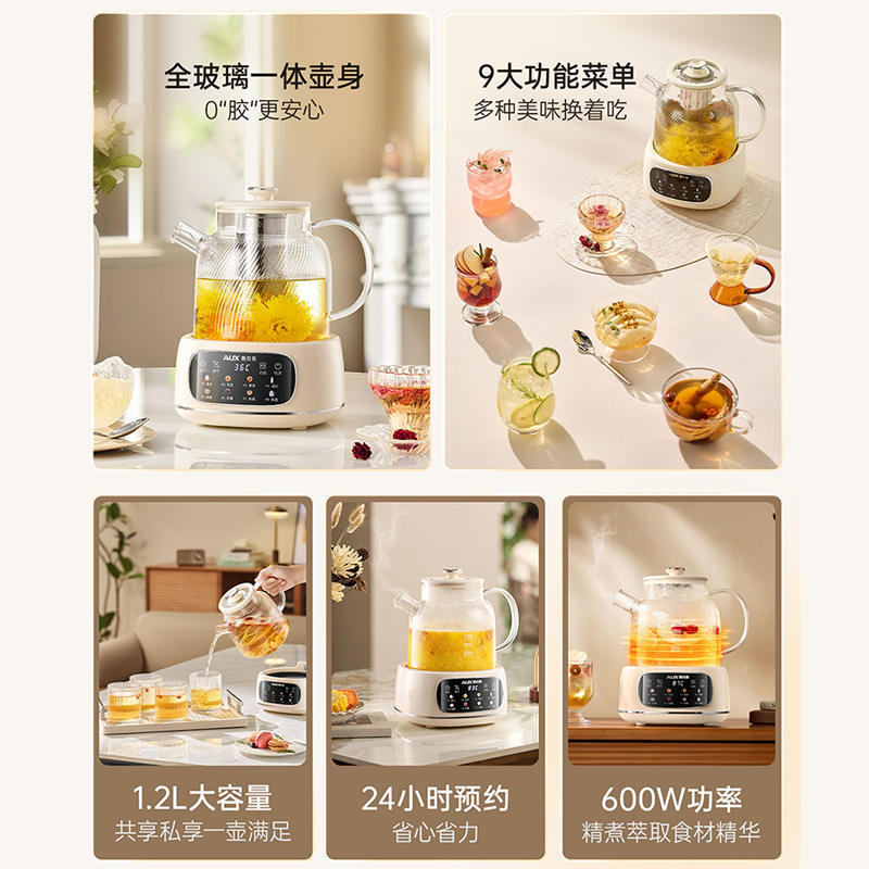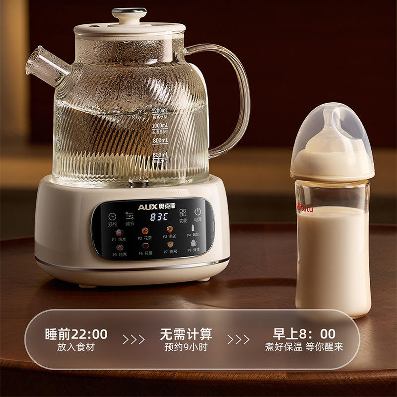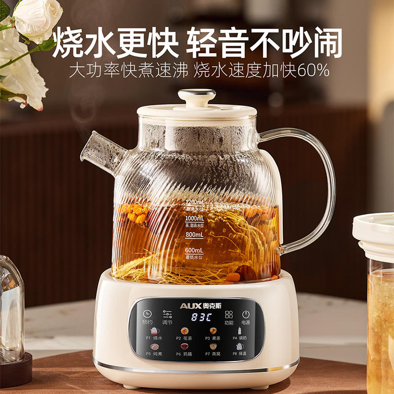 AUX All Glass Electric Kettle 1.2L Temperature Control Automatic Shut Off Tea Maker Steamer Boiler