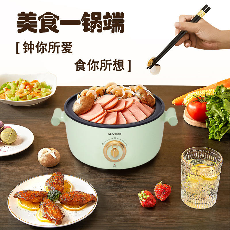 AUX Electric Frying Pan 5L Non-Stick Round Mechanical Control Multi-Functional Household Cooker