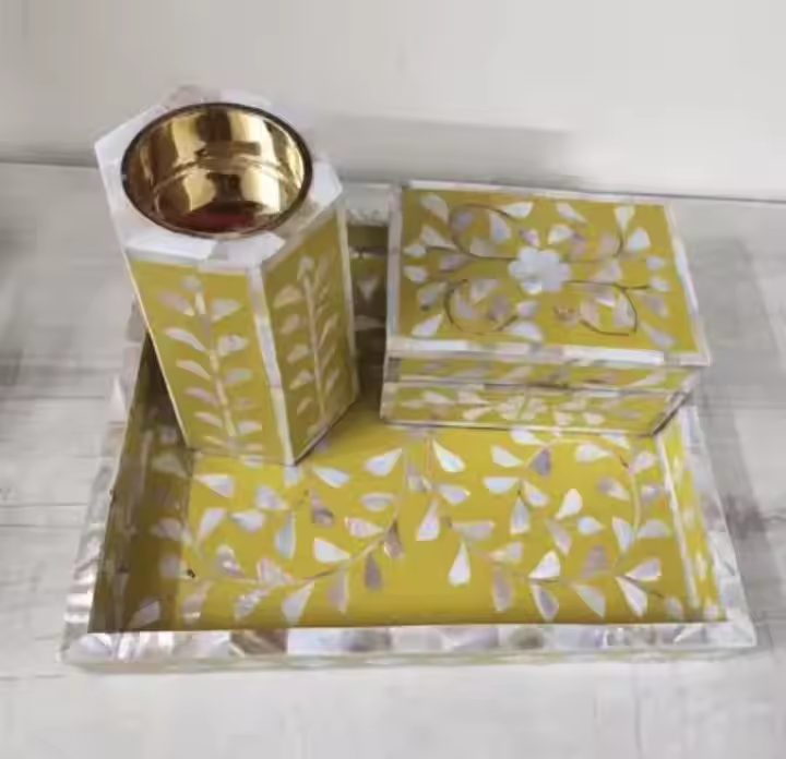 AVAILABLE RAMDAN GIFTS BAKHOOR and BURNAR SET of BONE INLAYS and ACRYLIC SERVING TRAYS SETS for HOME DECOR