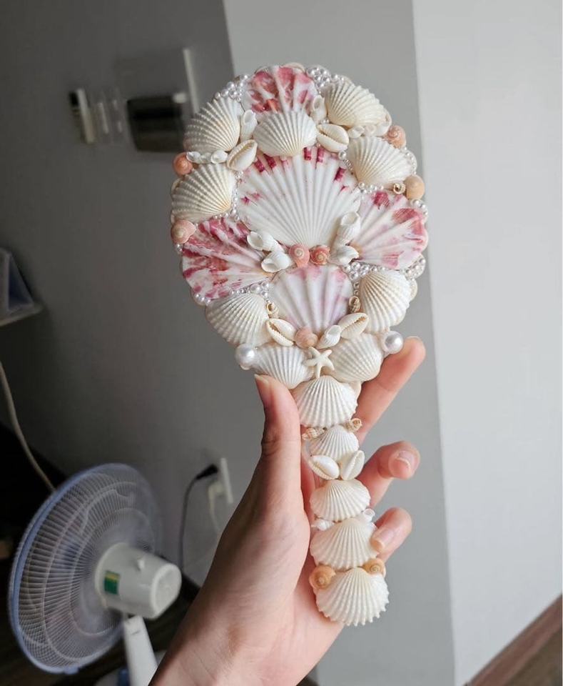 AVAILABLE Seashell Hand Mirror Lightweight Stylish Mirror for Daily Grooming Makeup Personal Vanity Use Vietnam