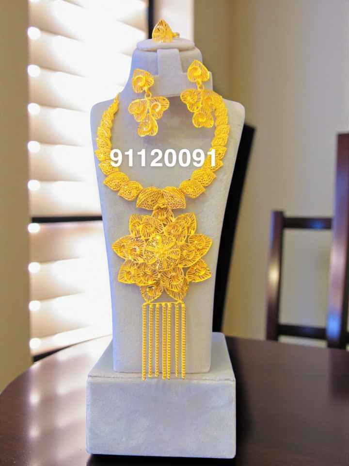 AWAIS HOUSE New Fashion Hiphop Style Gold Plated Brass Diamond Women's Jewelry Set Necklace Bracelet Wedding Party Chunky