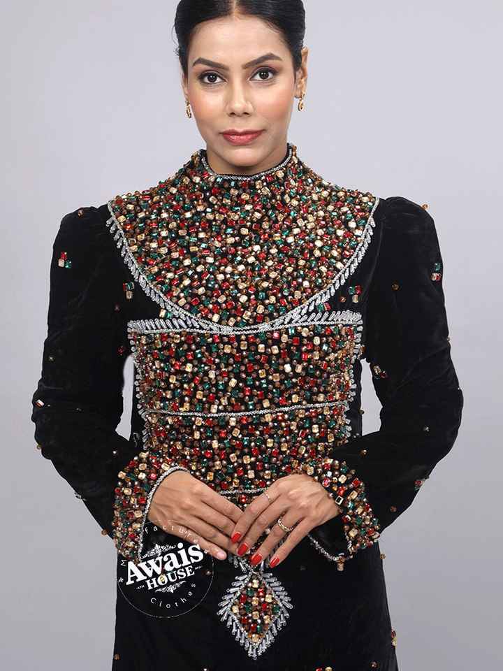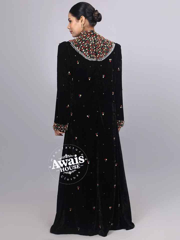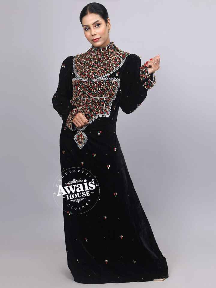 AWAIS HOUSE Plus Size Moroccan Velvet Kaftan Dress Hand Beaded Lightweight Ethnic Style Floor Length Long Sleeve High Neck