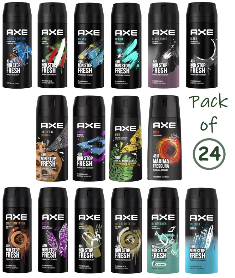 AXXE Black Mens Body Spray Deodorant 48hr Odor Protection Frozen Pear & Cedarwood