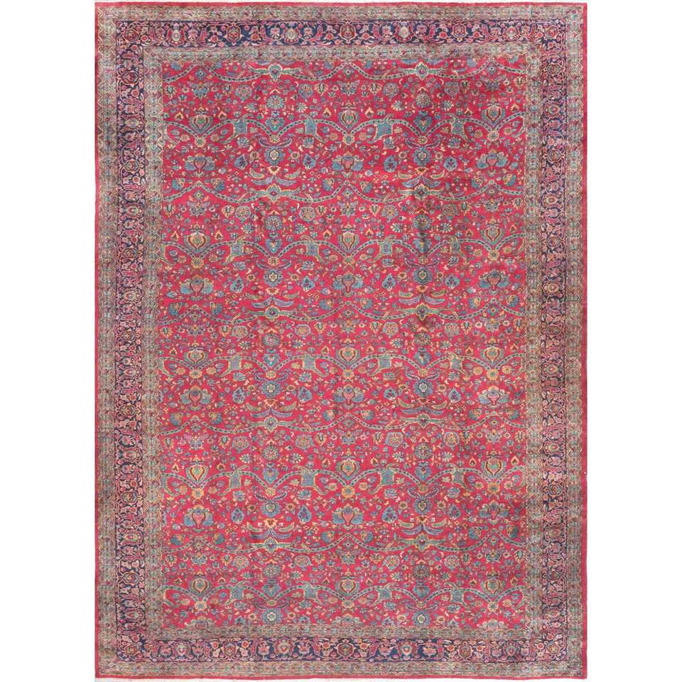 Aalam Hand Knotted Wool Rugs Red & Orange Floral & Abstract Pattern 9x12 Rectangle for Home Entryway & Living Room Pae-5903