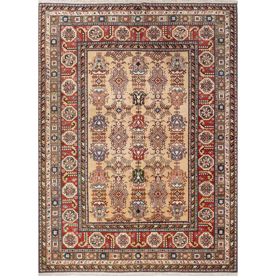 Aalam Hand Knotted Wool Rugs Red Orange Medallion Kilim for Home 9x12 Rectangle Abstract Handmade for Teen for Entryway Hallway