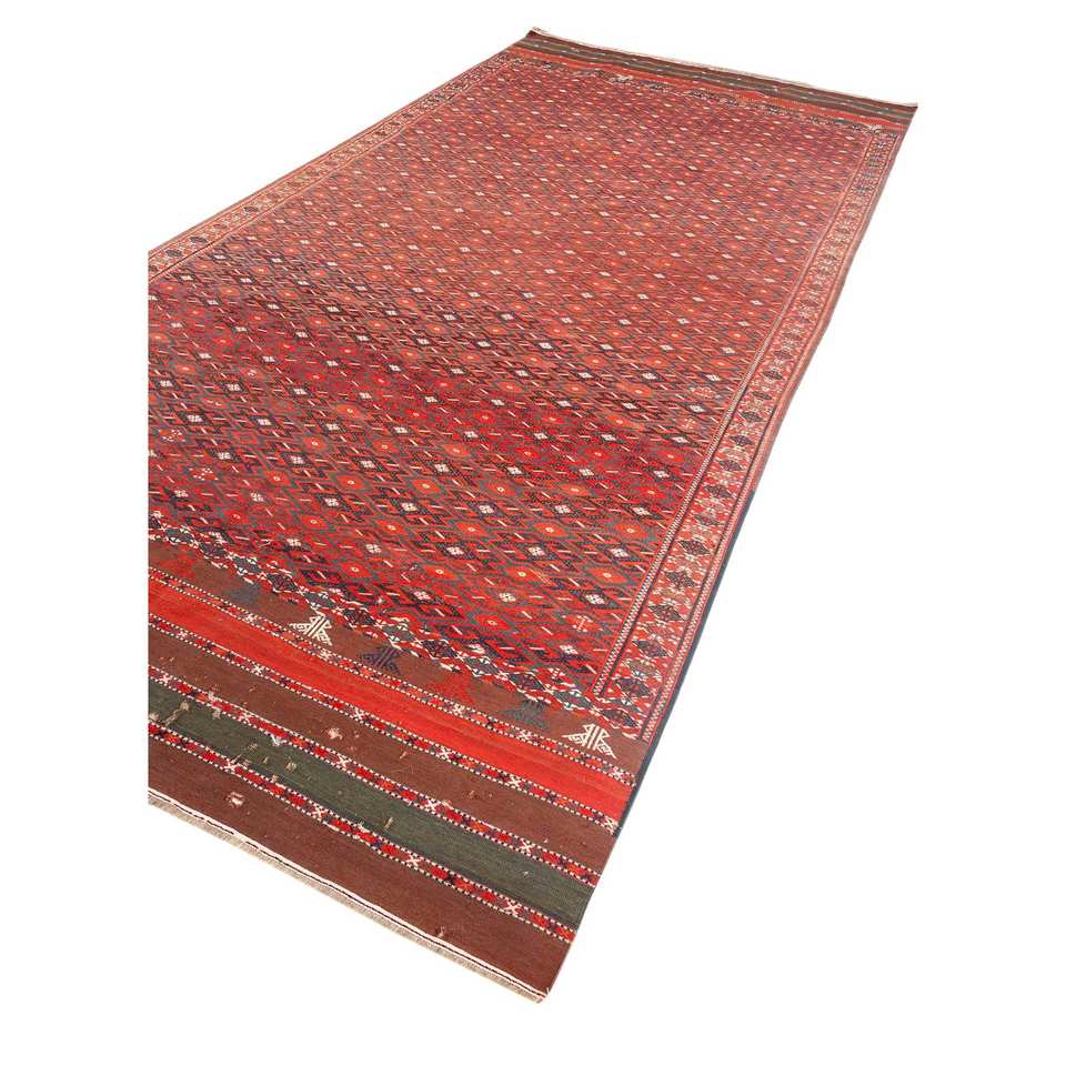 Aalam Handmade Wool Rugs in Red & Orange Geometric & Abstract Pattern for Home Hallway Rectangle Shape 10mm Thickness-Paem-1057