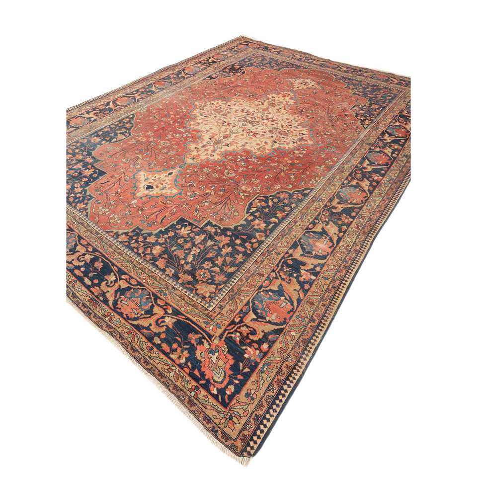Aalam Large Area 9x12 Wool Rugs Red Orange Hand Knotted Medallion for Home-for Entryway Hallway 10mm Thickness-Model Paem-1481