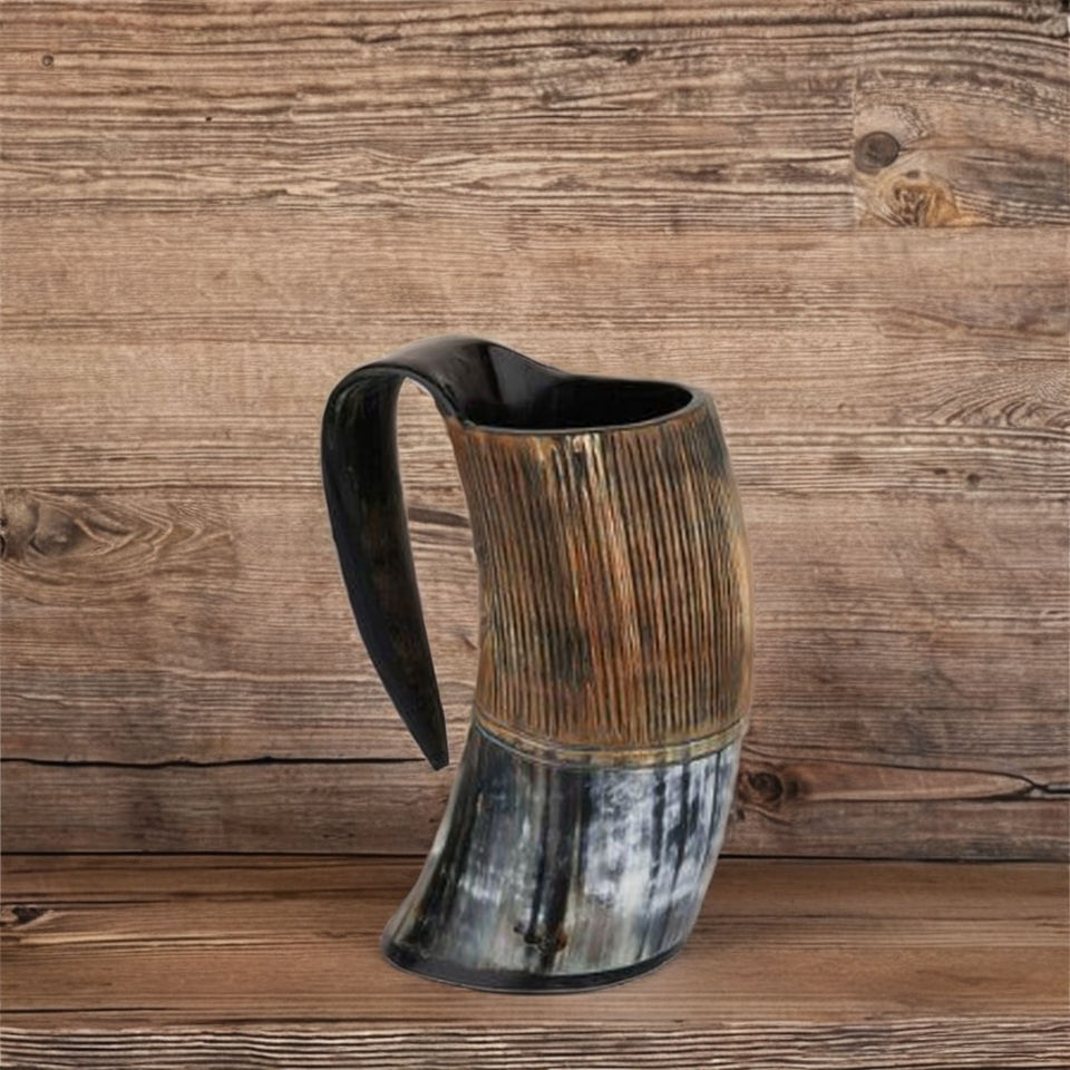 Handcrafted Cow Horn Mug with Handle Polished Buffalo Horn Drinking Cup for Men Authentic Norse Mug For Home Party Decoration