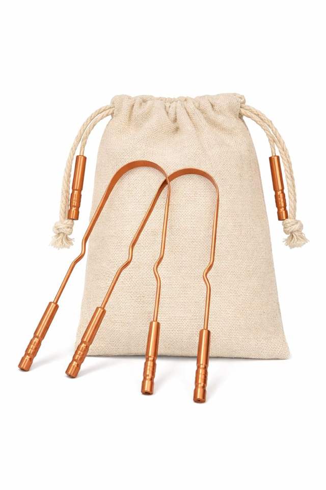 Aanju Oral Hygiene Metal Tongue Scraper & Cleaner Rose Gold U-Shaped Stainless Steel Effective Bad Breath Eliminator Home Use