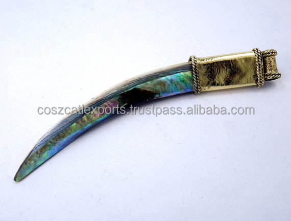Abalone Horn Pendant Tibetan Tooth Spike Bullet Head Shape Gold Plated Brass Bail Fine Jewelry Charms for Necklace Making