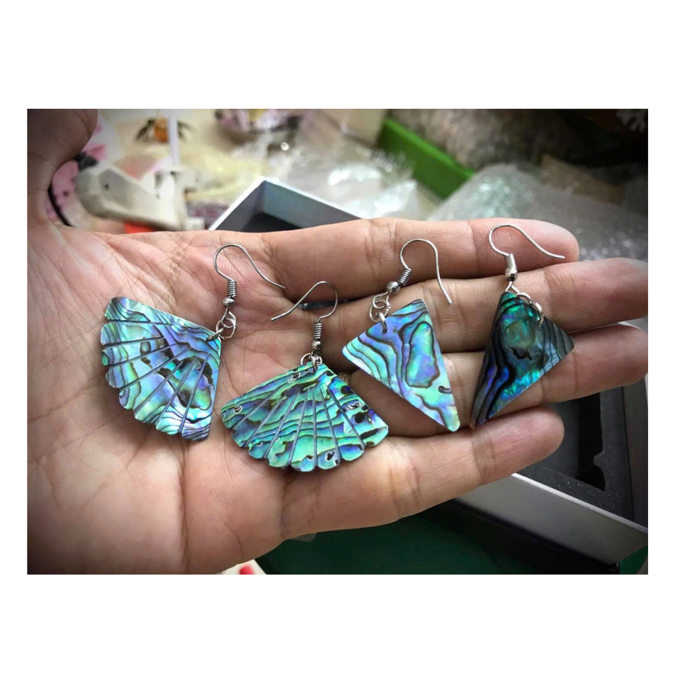 Abalone Shell Jewelry Oval Heart | 2025 Luxury Green Irregular MOP Mother of Pearl Colorful Earrings Fan Shape Drops for Women.