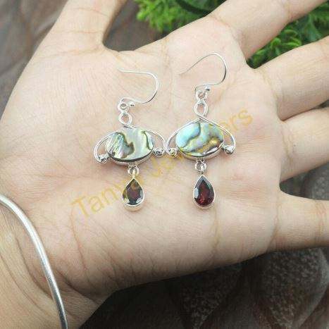 Abalone Shell Red Garnet Earrings Drop Dangle Earrings Abalone Shell And Garnet Gift Jewelry Earrings For Women At Best Price