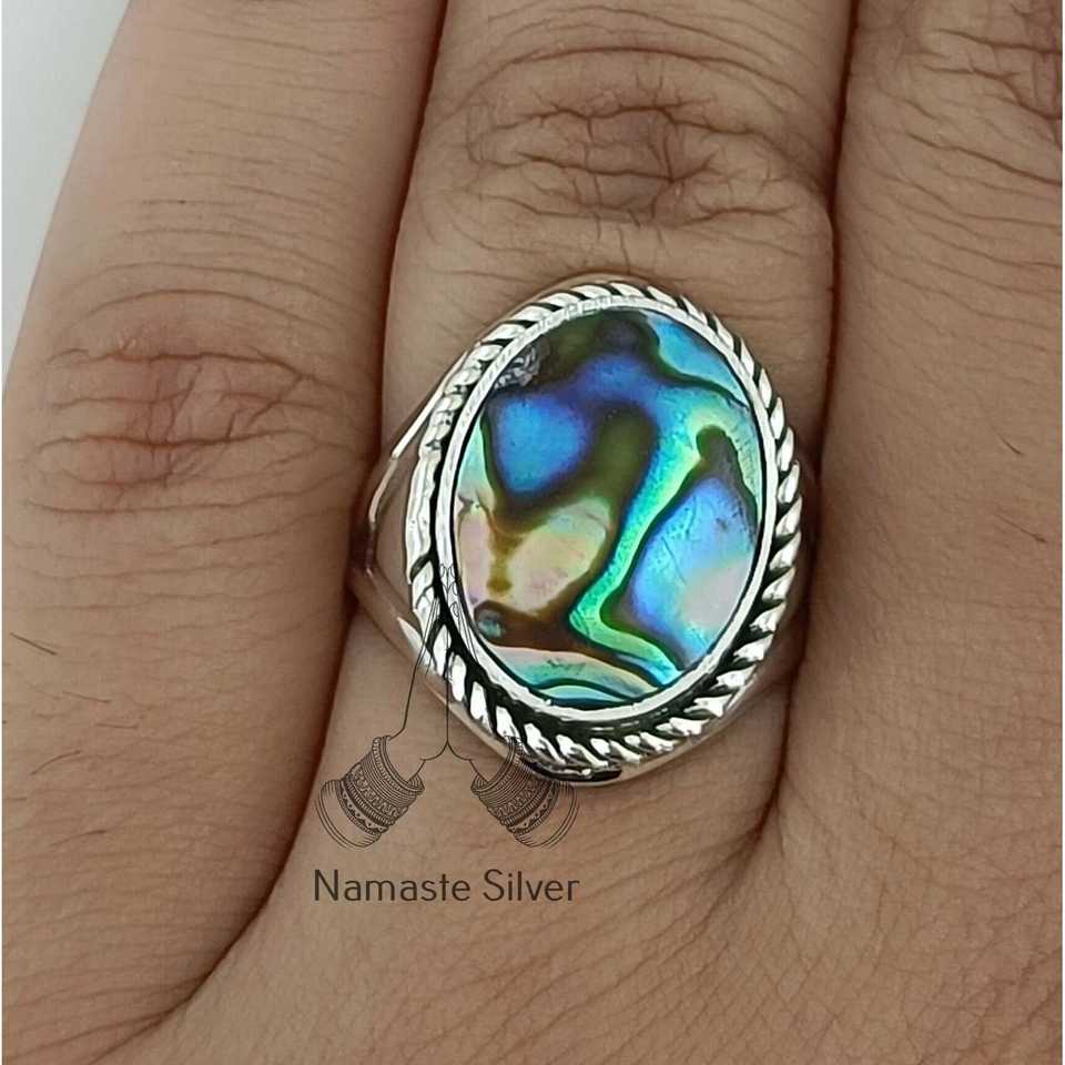 Abalone Silver Ring Boho Handmade Inlay Paua Shell Ring Licensed Private Gift for Her Featuring Unique Bohemian Style Jewelry
