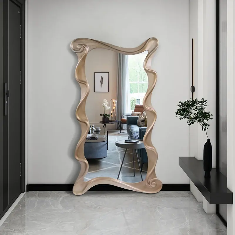 Abnormity French Mirror Vintage Frame Wavy Funky Aesthetic Mirror Irregular Design Dressing Spiegels Living Room Decorations