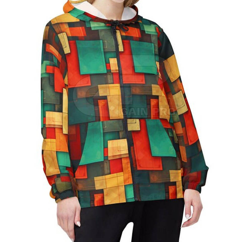Product name:Women Abstract Blocks Zip Jacket