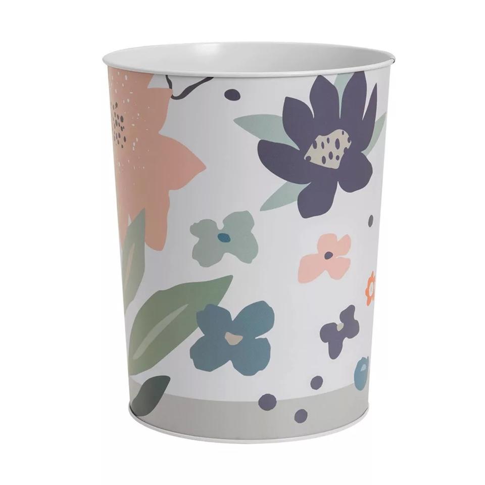 Abstract Floral Design Printed Metal Waste Bin for Home, Unique Metal Trash Can for Office, Bathroom Garbage Can for Kitchen