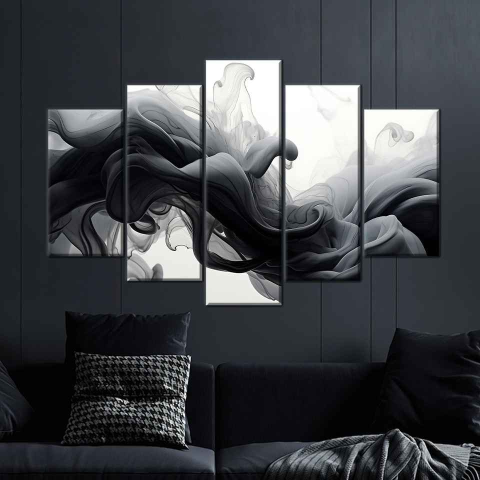 Abstract Fluid Motion Printed Canvas - Modern Monochrome Wall Art,5P Mix:Gallery Wrap