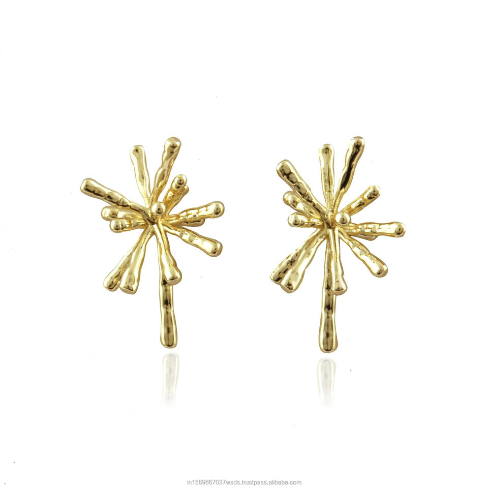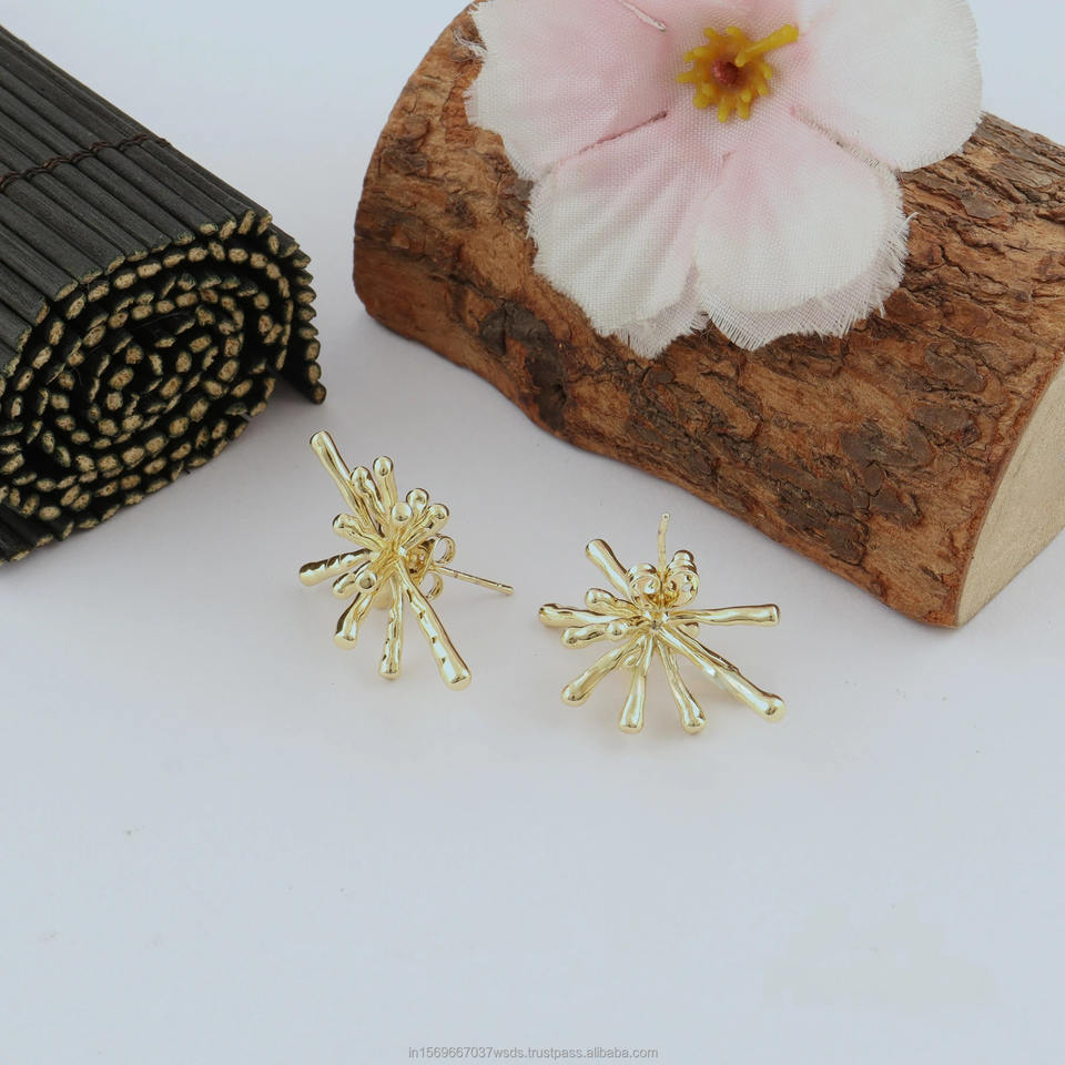 Abstract gold starburst earrings wholesale textured 18k gold stud earrings for women