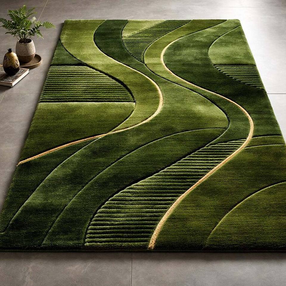 Abstract Green Carpet Modern Area Rug Hand Tufted Carpet For Living Room Bedroom Decorative Floor Rug Gift For Home Decor