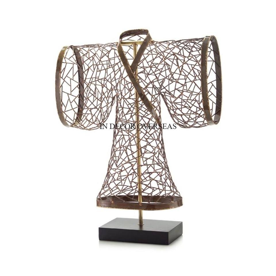Abstract Heavy Duty Metal Art Unique Fancy Designer Gold Plated Eye Catching Look Sculpture With Black Color Powder Coated Base