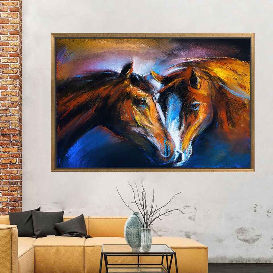 Abstract Horse Print Canvas: Elegant Animal Art for Home Decor,1P:Gold Framed