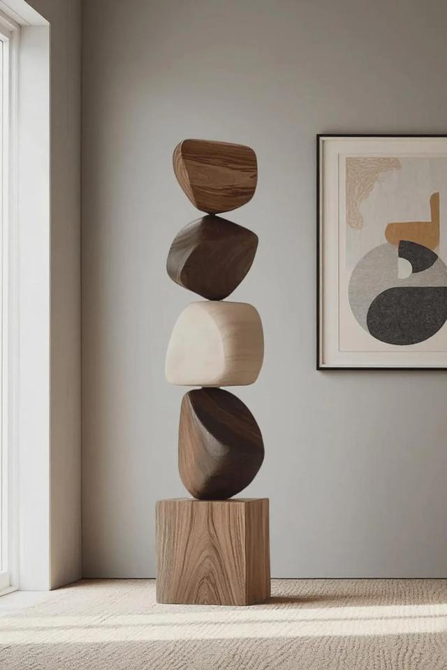 Abstract Stacked Wooden Sculpture Minimalist Art Showpiece Perfect For Modern Home Decor Tabletop And Interior Styling