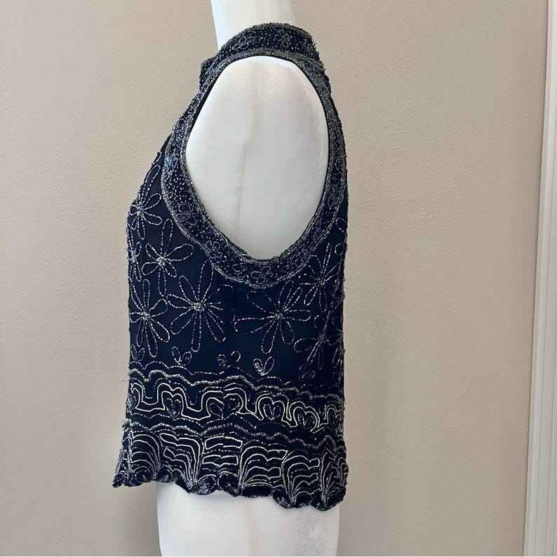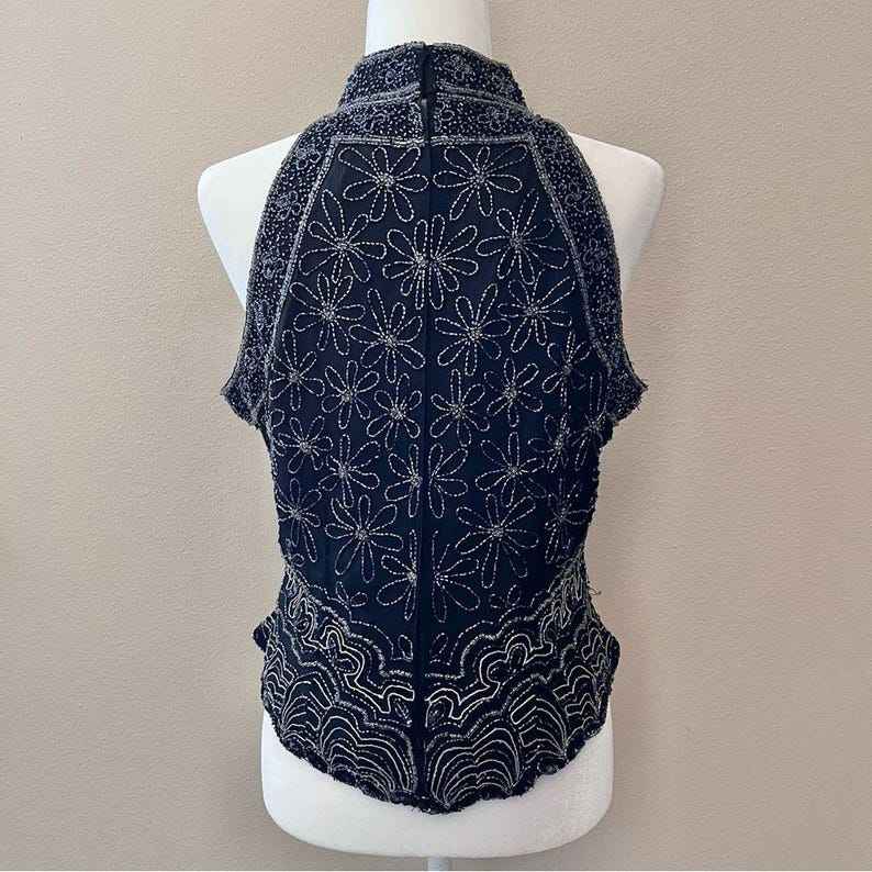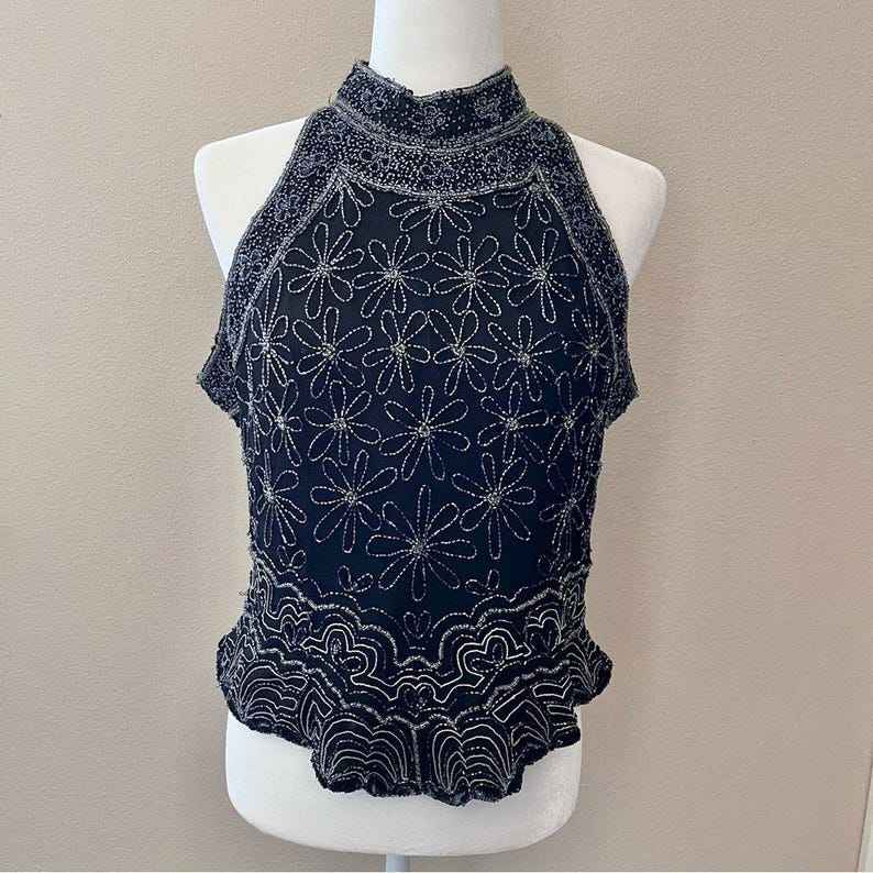 Abstract Three-dimensional Butterfly Studded Beaded Fringe Tank Top With Steel Wire Shape