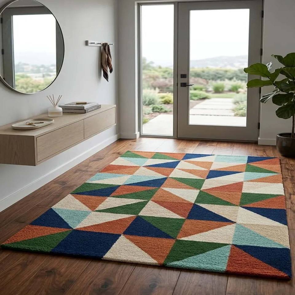 Abstract Triangle Pattern Area Rug Colorful Hand Tufted Soft Wool Plush Modern Carpet Living Room Bedroom Decorative Floor Rug