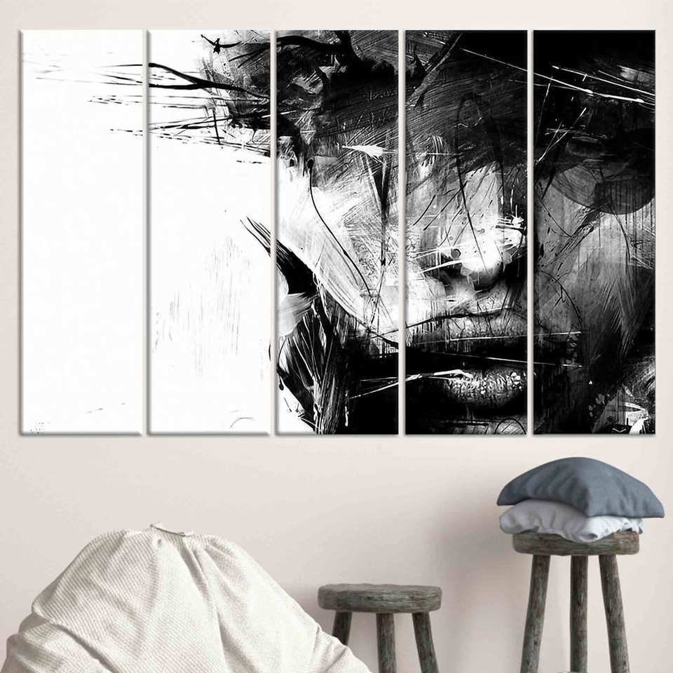 Abstract Woman Canvas Print: Minimalist Black and White Wall Art,SET OF 5 CANVAS
