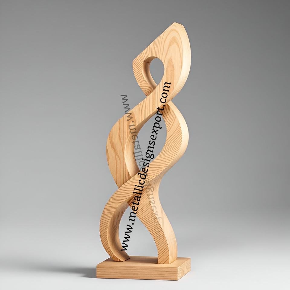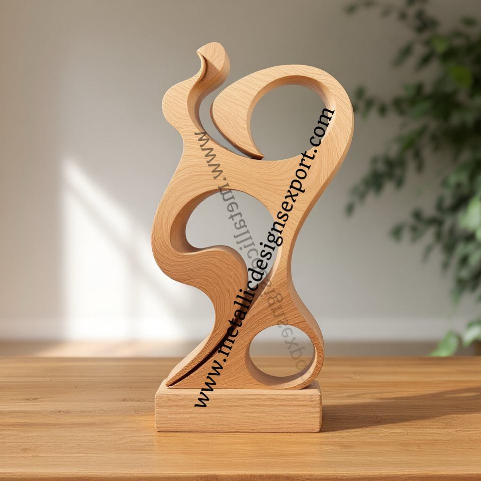 Abstract Wooden Sculpture Trophy Modern Artistic Decor, Handmade Curved Wood Statue for Awards, Gifts & Home Decor