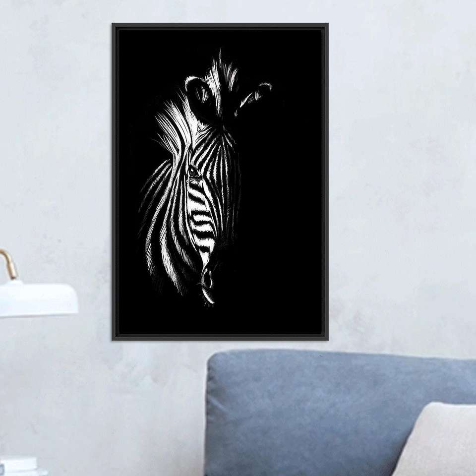 Abstract Zebra Canvas Print: Modern Animal Graphic Wall Decor,BLACK FRAMED CANVAS