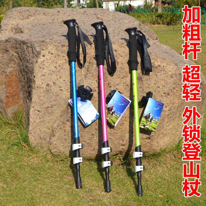 Abuda Outdoor Aluminum Alloy Trekking Poles 3 Section Adjustable With Rubber Tips For Hiking Walking Sticks Blue Pink Green