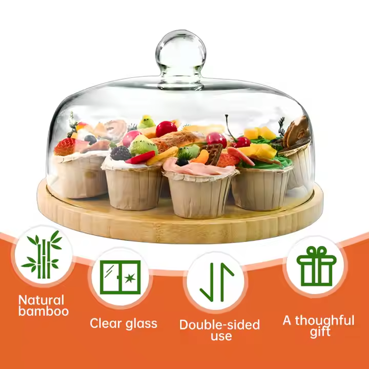 Acacia Bamboo Hanging Wooden Rotating Dessert Holder Cylinder Wood Cupcake Display Rack Cake Stands for Wedding with Acrylic Lid