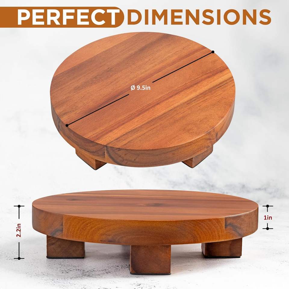 Acacia Bamboo Riser Pedestal Stand for Display for Bathroom Vanities Kitchen Countertops with Tray for Soap Plants Candle Holder