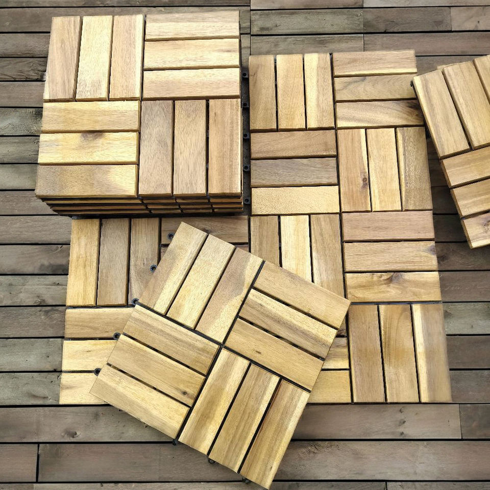 Acacia Decking Floor Tiles 30x30 cm Waterproof Fireproof Eco-Friendly Anti-Slip Certified Indoor Patio Balcony Terrace Garden