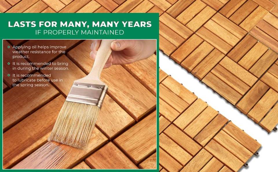 Acacia Decking Tiles 300*300mm Interlocking Floor Tiles for Interior Exterior Home Terrace Decor Eco-Friendly Backyard Decor