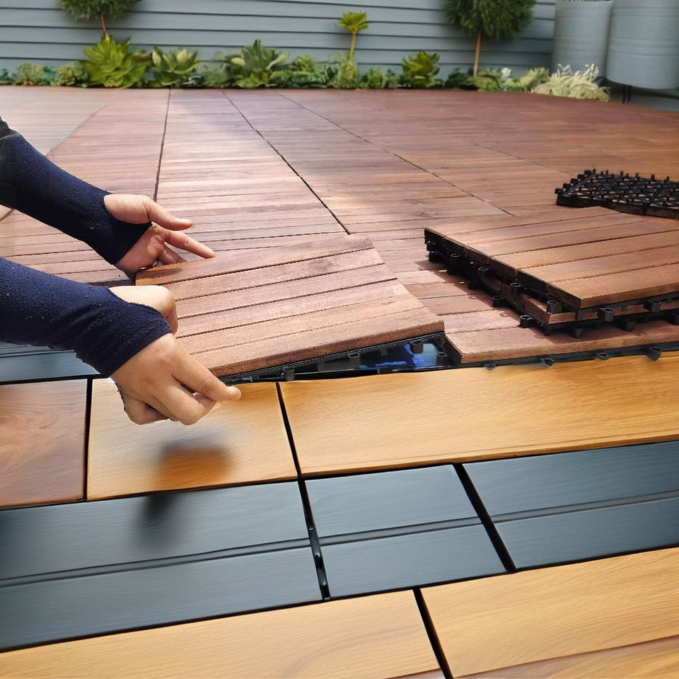 Acacia Decking Tiles 300*300mm Interlocking Click Install Floor Tiles for Outdoor & Indoor Home Garden Terrace Backyard Decor
