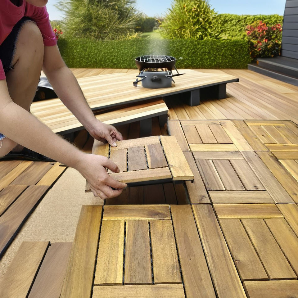Acacia Decking Tiles 300*300mm Interlocking Floor Tiles for Outdoor Interior & Exterior Home Garden Terrace & Backyard Decor