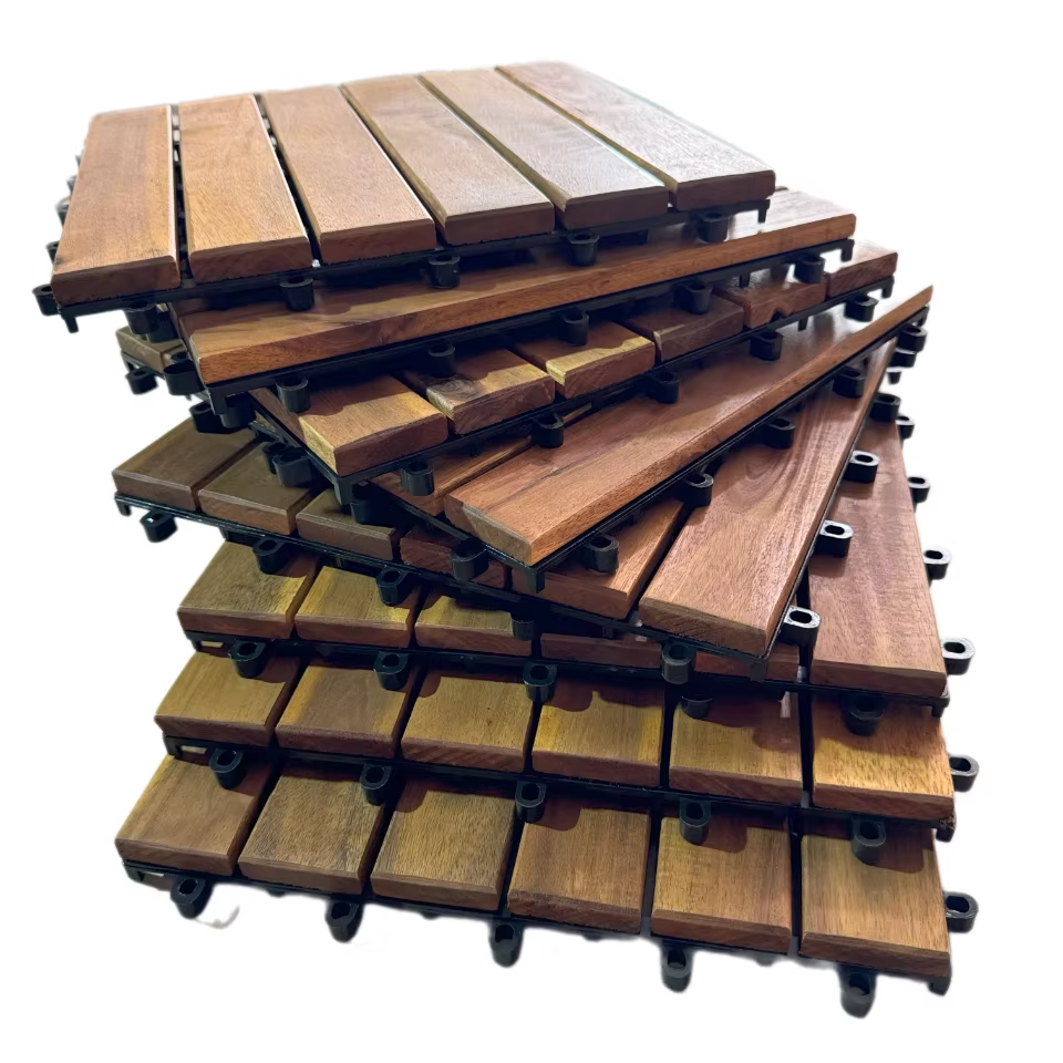 Acacia Decking Tiles - 6 Slats 300*300 mm Durable Eco-Friendly Anti Slip Oiled Wooden Decking Tiles for Outdoor and Indoor