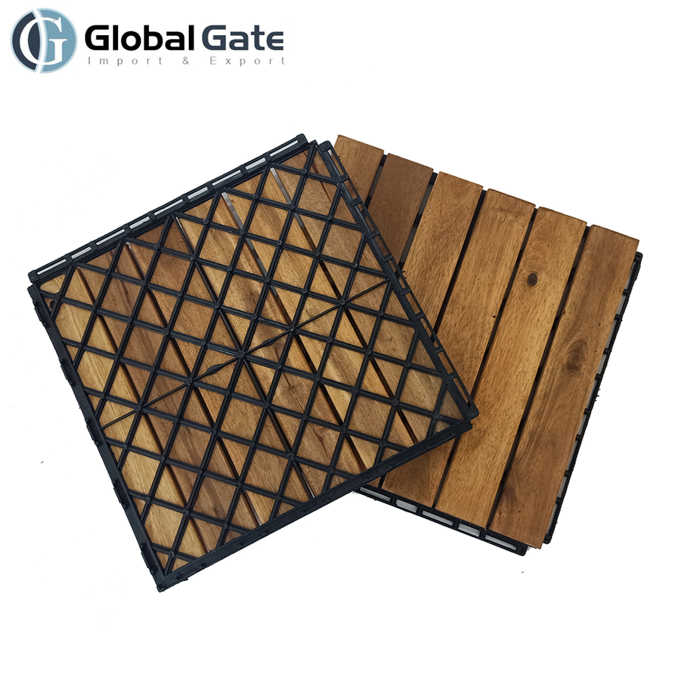 Acacia Hardwood Flooring Interlocking Plastic Wood Floor Composite Wood Deck Tiles
