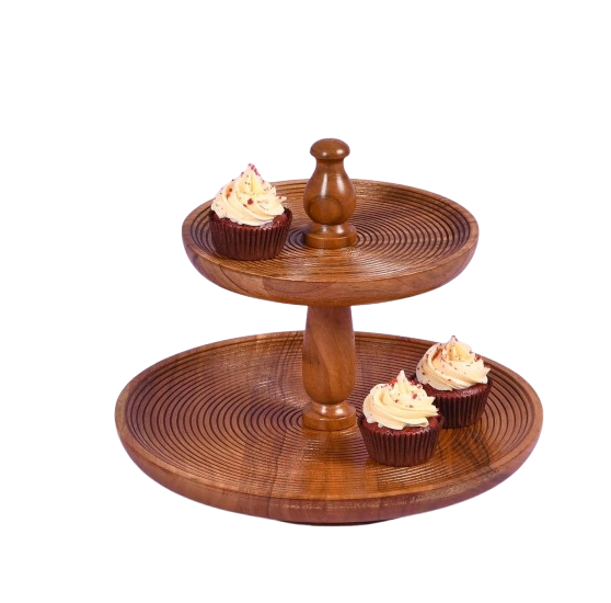 Acacia Wood Cake Stand Two Tiered Tray Rustic Decor Natural 11 Inches Dessert Table Display Wedding Birthday Baby Shower