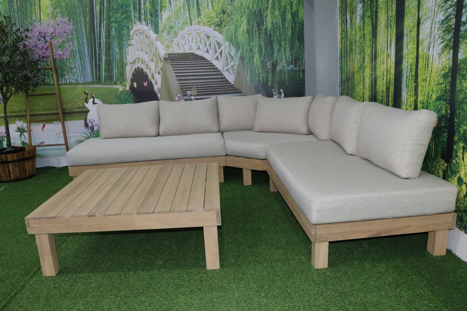 Acacia Wood Corner Sofa Set Durable Outdoor Sectional for Patio Garden Resort and Commercial Hospitality Seating Use
