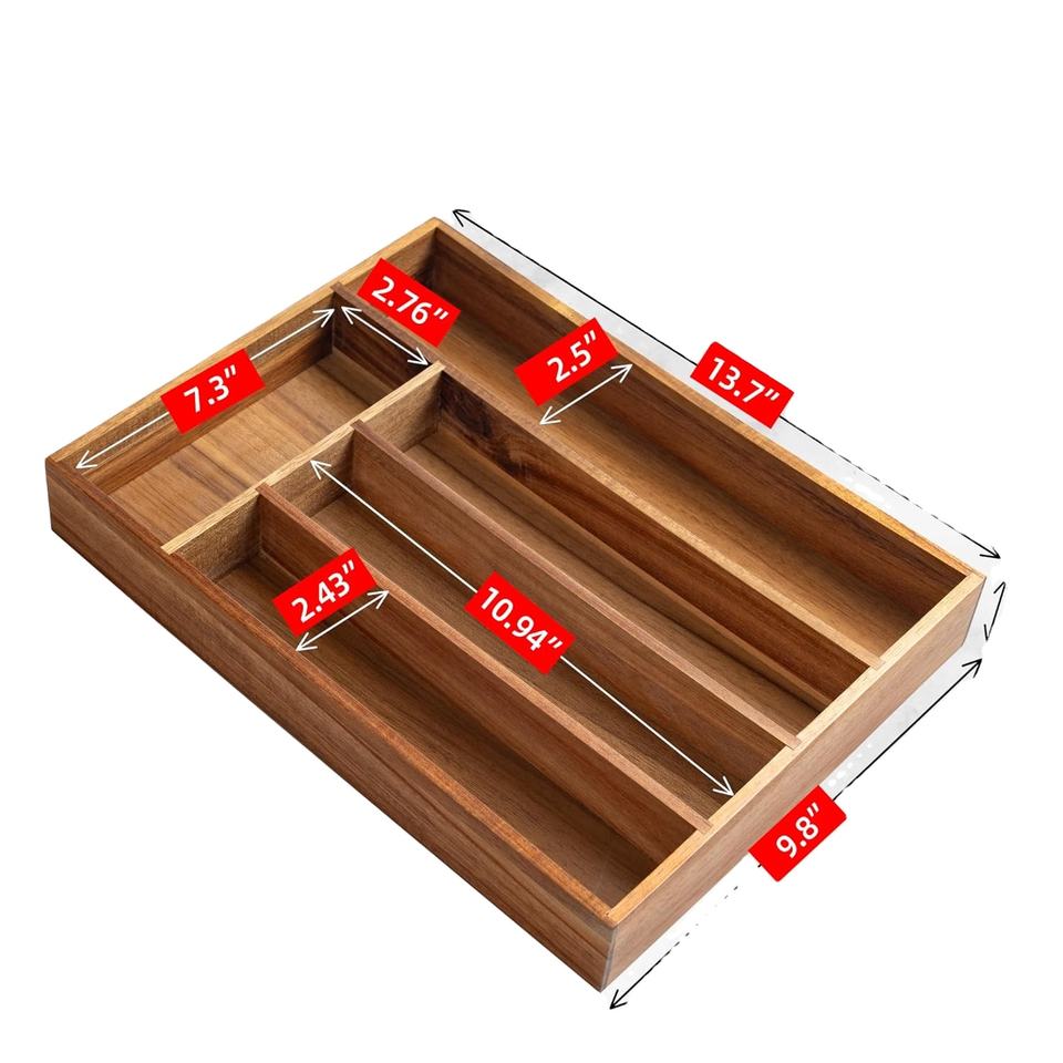 Acacia Wood Cutlery Drawer Organizer Plastic Kitchen Knives Accessories Storage Flatware Silverware Holder for Tableware