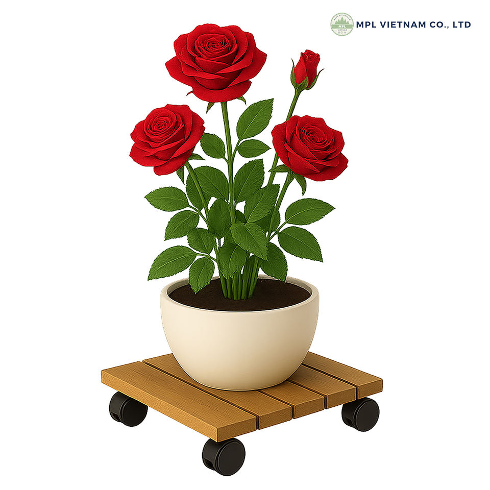 Acacia Wood Eco-Friendly Plant Caddy Strong Rolling Pot Holder Smooth Wheels 150Kg Capacity Export Quality Garden Balcony