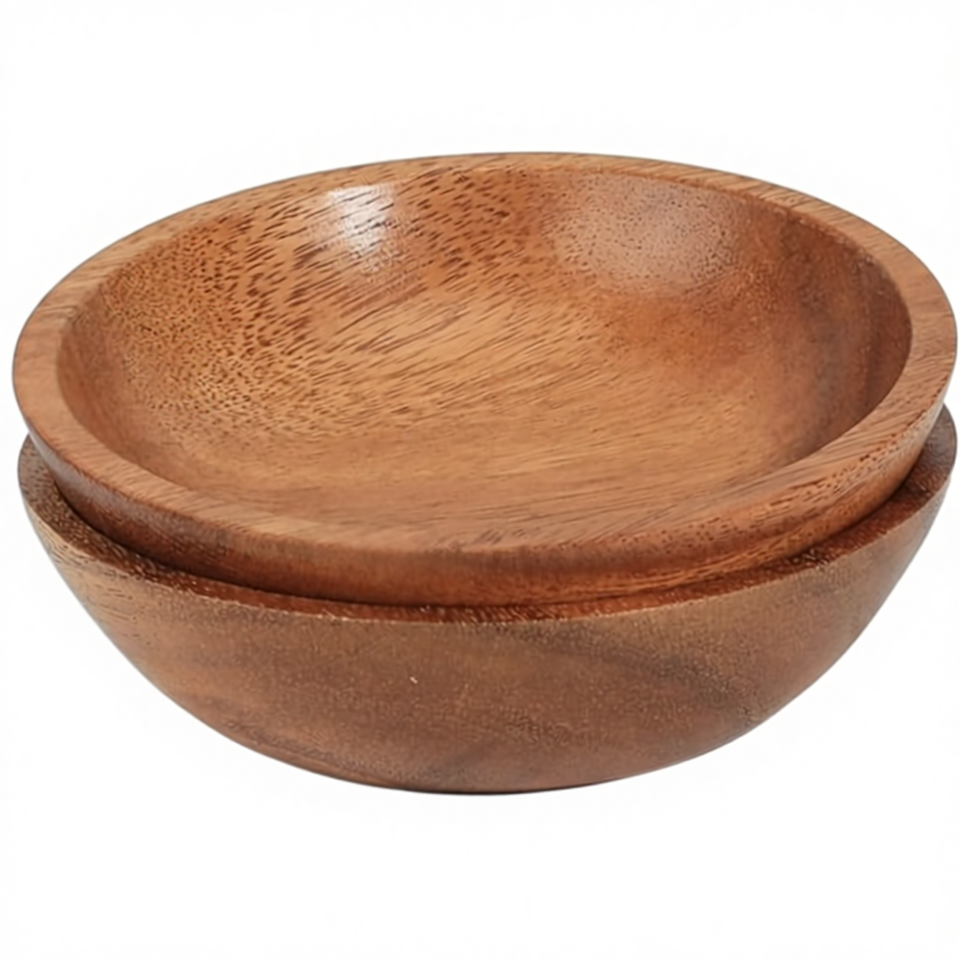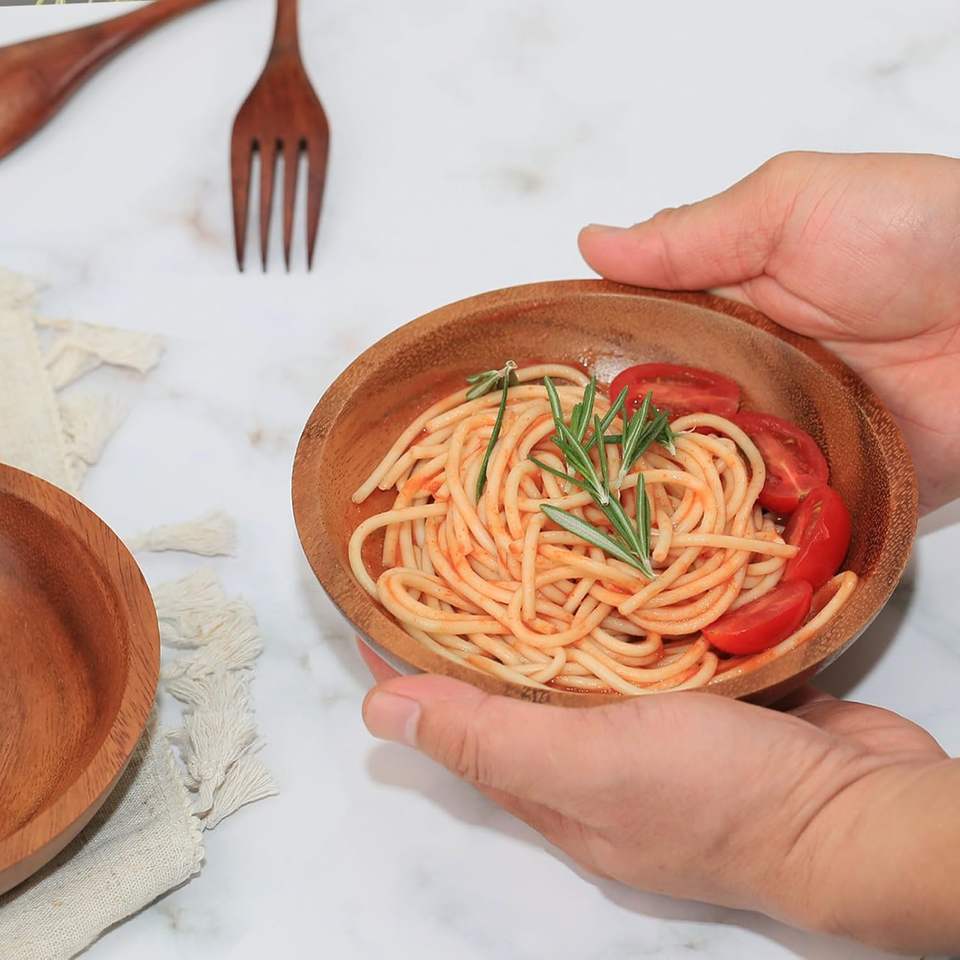 Acacia Wood Farmhouse Style 6-Inch Handcrafted Natural Textured Serving Bowls Set of 2 for Food/Soup/Salad/Pasta